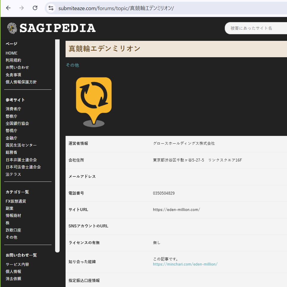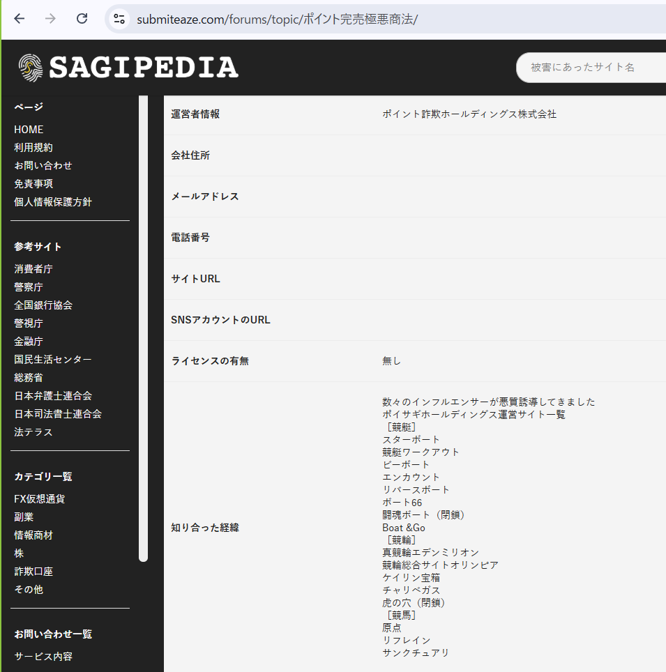 参考となる(外部サイト「サギペディア」より引用)情報を以下に挙げます。